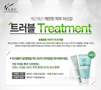 A.H.C는 15일부터 31일까지 환절기 일교차에 건조하고 예민해진 피부 케어법을 제시하는 트러블 피부 케어 이벤트를 진행한다.
