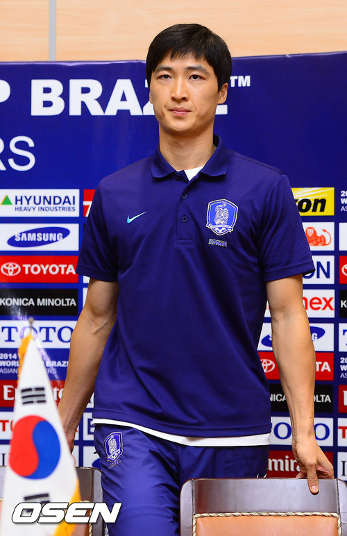 15일 오후(한국 시간) 이란 테헤란 이란 풋볼 아카데미에서 진행된 2014 브라질 월드컵 한국과 이란의 공식 기자회견에서 곽태휘가 입장하고 있다.