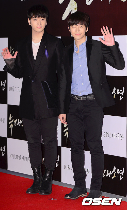 15일 오후 서울 CGV 왕십리에서 진행된 영화 '늑대 소년' VIP 시사회에서 2PM 찬성, 준호가 포토타임을 갖고 있다.