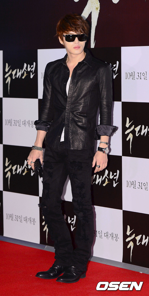 15일 오후 서울 CGV 왕십리에서 진행된 영화 '늑대 소년' VIP 시사회에서 김재중이 포토타임을 갖고 있다.