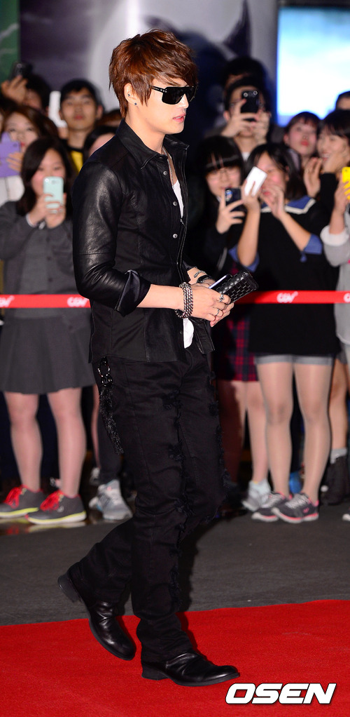 15일 오후 서울 CGV 왕십리에서 진행된 영화 '늑대 소년' VIP 시사회에 김재중이 입장하고 있다.