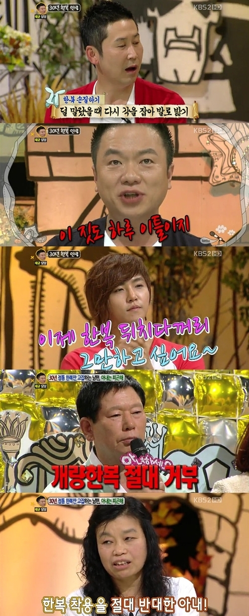 이날 '안녕하세요'에는 부활이 게스트로 출연해 고민 상담자들의 이야기를 들어줬고, 30년 정통 한복만 고집하는 남편 때문에 고생하는 아내 유영숙 씨가 출연해 눈길을 끌었다.