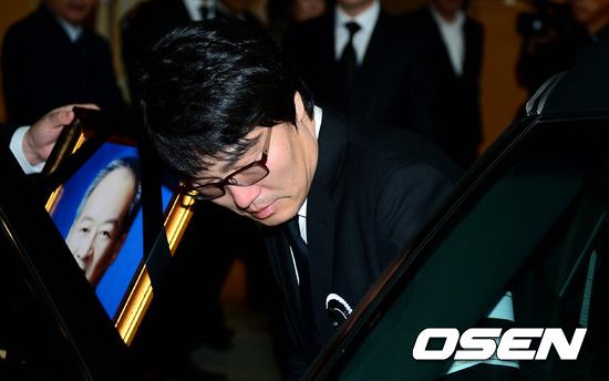 16일 서울 일원동 삼성서울병원 장례식장에서 진행된 고 조경환의 상주가 운구차에 타고 있다.