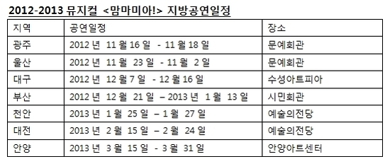 [OSEN=정자랑 인턴기자] 뮤지컬 ‘맘마미아!’가 11월 16일부터 광주, 부산, 대구 등 7개 지역 공연에 나선다.