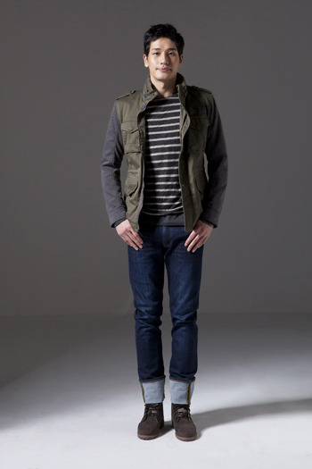 또한 다른 컬러와의 조합은 야상재킷의 밋밋함을 보다 세련되게 연출 할 수 있다. 클래식한 스트라이프 패턴이 활용된 니트 아이템, 머플러 등과 믹스매치하면 도시 감성이 느껴지는 밀리터리 룩의 연출이 가능하다.