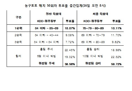 2012-2013시즌 농구토토 매치 50회차 투표율 중간집계 결과