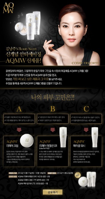 당첨자는 페이스북 페이지를 통해 22일 발표되며, 당첨된 소비자에게는 AQMW 리페어 에멀션 엑스트라 리치, AQMW 리페어 크림과 AQMW 페이셜 워시 정품을 증정한다.