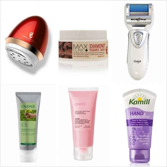 카트린의 맥스클리닉 다이아몬드 에그힐 풋케어 기기는 반영구적으로 사용가능한 각질제거기로, 강약을 조절하여 각질을 제거한다. 천연 허브 추출물의 시원한 향취가 발냄새까지 한번에 잡아주는 에그힐밤을 함께 사용할 수 있다. 엠조이의 마이크로페디도 있다. 건전지 2개로 작동하는 심플한 형태로 장거리 여행에도 동반하기 좋은 제품이다.