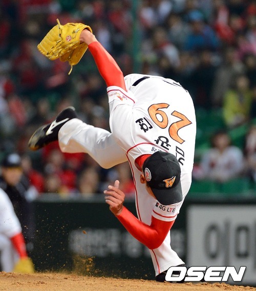 김광현,'얼굴이 마운드에 닿을 듯!'