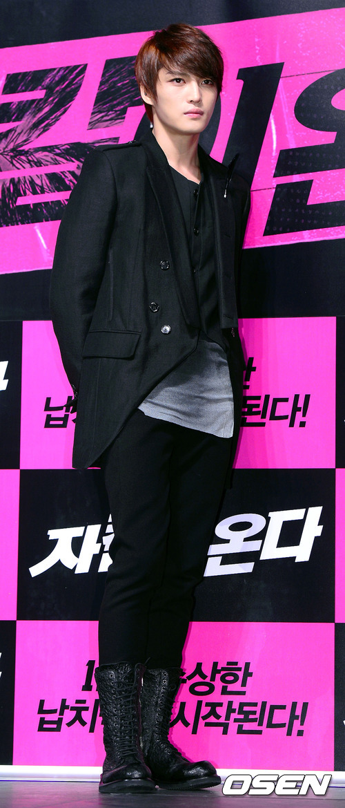 16일 오후 서울 한남동 블루스퀘어 삼성전자홀에서 진행된 영화 '자칼이 온다' 제작보고회에서 김재중이 포토타임을 갖고 있다.
