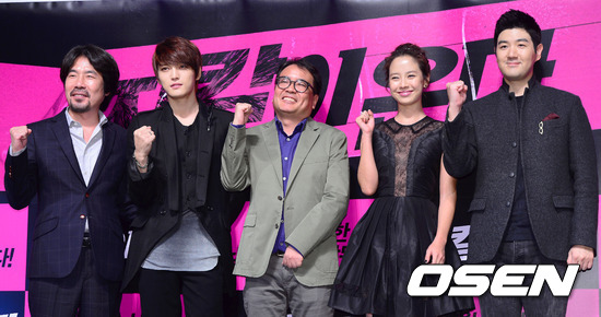 16일 오후 서울 한남동 블루스퀘어 삼성전자홀에서 진행된 영화 '자칼이 온다' 제작보고회에서 오달수, 김재중, 배형준 감독, 송지효, 한상진이 포토타임을 갖고 있다.