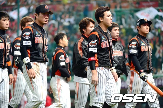 첫경기서 패한 롯데 선수들이 침울한 표정으로 경기장을 빠져 나가고 있다./spjj@osen.co.kr
