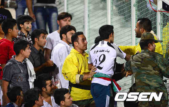 17일 새벽(한국시간) 이란 테헤란 아자디 스타디움에서 열리는 '2014 브라질 월드컵 최종예선' 4차전 한국과 이란의 경기에 앞서 이란 관중이 경찰과 몸싸움을 펼치고 있다
