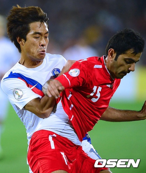 17일 새벽(한국시간) 이란 테헤란 아자디 스타디움에서 열린 '2014 브라질 월드컵 최종예선' 4차전 한국과 이란의 경기 전반 박주영이 이란 몬타제리와 치열한 몸싸움을 벌이고 있다.