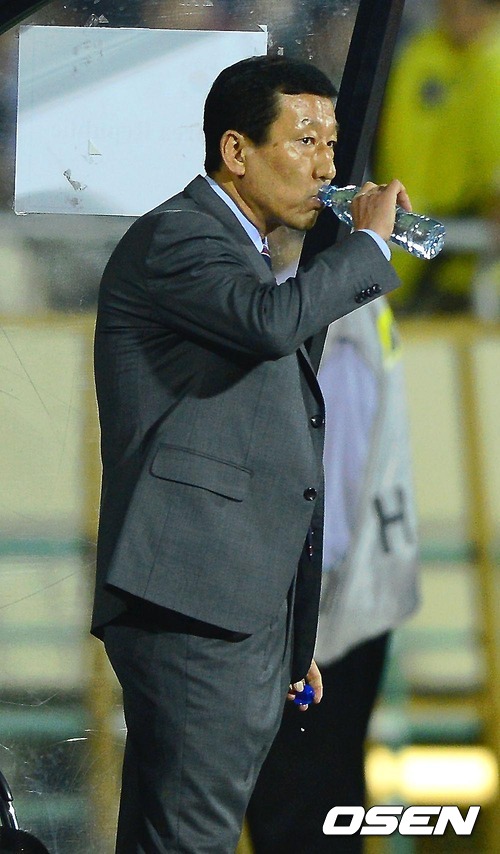 17일 새벽(한국시간) 이란 테헤란 아자디 스타디움에서 열린 '2014 브라질 월드컵 최종예선' 4차전 한국과 이란의 경기 후반 최강희 감독이 물을 마시고 있다.