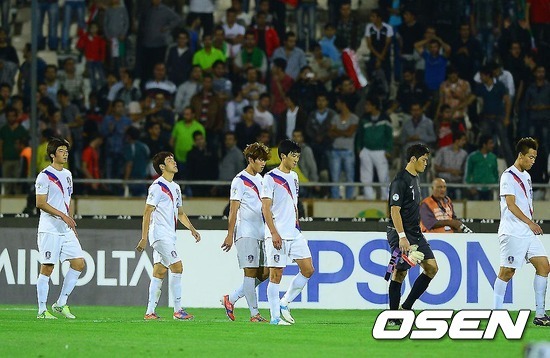 대표팀은 17일(한국시간) 테헤란의 아자디 스타디움에서 벌어진 2014브라질월드컵 아시아 최종예선 4차전 이란 원정에서 후반 30분 자바드 네쿠남에 결승골을 내주며 0-1로 패했다.