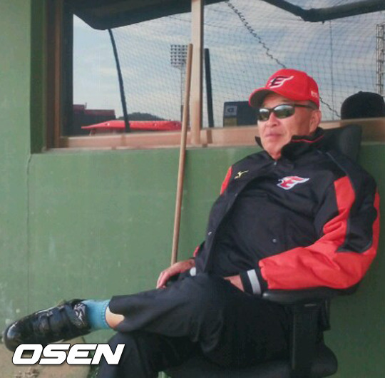 의자에 앉자 김응룡 감독 특유의 모습이 나왔다. 한 쪽 다리를 나머지 다리 위에 올리고, 허리는 최대한 의자 뒤로 기댔다. 과거의 해태와 삼성 시절 덕아웃에서 취한 그 모습 그대로였다. 8년의 세월이 지났지만 김 감독만의 자세는 전혀 흐트러짐이 없었다. 선글라스를 꼈지만 그 안으로 선수들의 자세를 모두 들여다봤다.