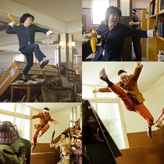 이번에 공개된 액션 스틸은 한 편의 액션 영화를 보는 듯한 김인권의 현란한 동작이 눈길을 사로잡는다. 먼저 첫 번째 스틸은 단무지를 이용해 만든 쌍절곤을 휘두르는 김인권의 모습을 담은 컷으로 김인권의 비장한 표정이 눈길을 사로잡는다. 두 번째 스틸은 예린의 생일 파티인줄 알고 왔다가 대학생들 사이에 끼어서 오도 가도 못하고 있던 대오가 예린이 전경들에게 맞는 것을 보고 예린을 구하기 위해 시위 현장에 뛰어든 장면을 담고 있다.