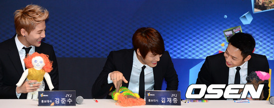 17일 오전 서울 염곡동 대한무역투자진흥공사(KOTRA)에서 가수 JYJ(재중, 유천, 준수)가 '2012 한일교류종합전' 홍보대사로 위촉됐다.
