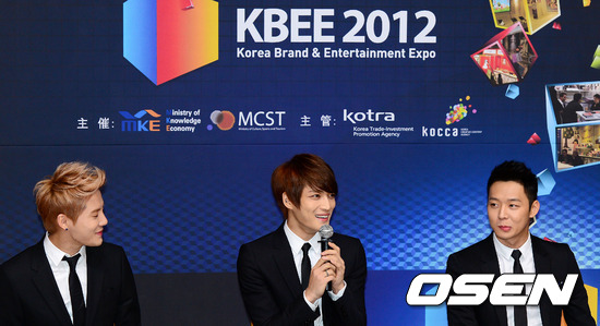 17일 오전 서울 염곡동 대한무역투자진흥공사(KOTRA)에서 가수 JYJ(재중, 유천, 준수)가 '2012 한일교류종합전' 홍보대사로 위촉됐다.