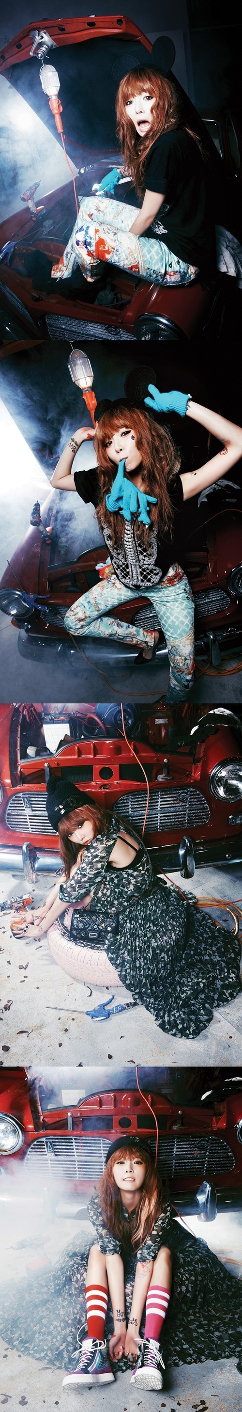 현아는 지난 16일 추가 공개된 재킷에서 직접 차를 고치는 엉뚱하고 귀여운 매력을 펼치는가 하면 오늘(17일) 공개된 재킷에서는 밀리터리 룩으로 압도적인 카리스마를 내뿜어 시선을 사로잡았다.