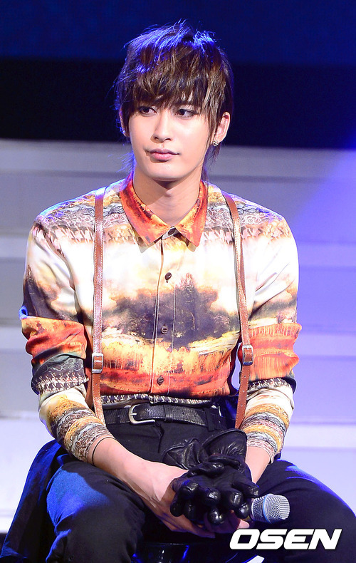 17일 오후 서울 광장동 멜론악스홀에서 진행된 '블락비 컴백 기자회견 및 쇼케이스'에서 블락비 재효가 사회자의 질문을 듣고 있다.
