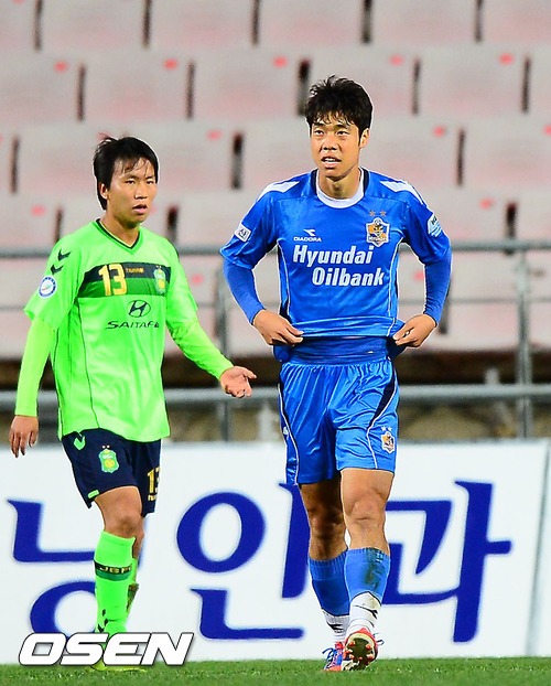 17일 저녁 울산문수축구경기장에서 열린 '현대오일뱅크 K리그 2012' 36라운드 울산 현대와 전북 현대의 경기에서 전반 울산 고슬기가 골에 성공한 후 무표정하게 걸어나오고 있다.