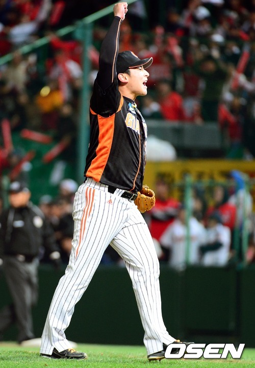 최대성이 SK 마지막 타자 임훈을 외야플라이로 처리 승리를 지켜낸 후 환호하고 있다./spjj@osen.co.kr