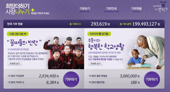 이번 캠페인은 '희망더하기 사랑나누기' 홈페이지(http://donation.betman.co.kr/)를 통해 오는 31일까지 참여할 수 있다.