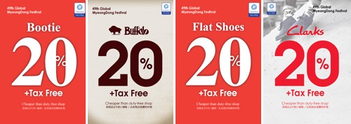 명동 축제 기간 동안 금강제화 명동점을 방문하면 플랫과 부티 슈즈에 한해 20% 할인 혜택을 받을 수 있으며, 랜드로바에서는 버팔로와 클락스 제품 20% 할인 혜택을 받을 수 있다. 특히 외국인은 면세까지 제공되어 쇼핑의 즐거움을 더해준다.