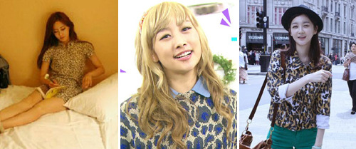 얼마 전 카라의 니콜은 블루 톤의 호피 무늬와 와인 컬러의 소매가 어우러진 니트로 화사하고 캐주얼한 스타일을 연출해 눈길을 끌었다. 니콜처럼 귀여운 분위기를 스타일리시하게 어필하고 싶다면 호피무늬 니트와 레깅스를 활용하자.