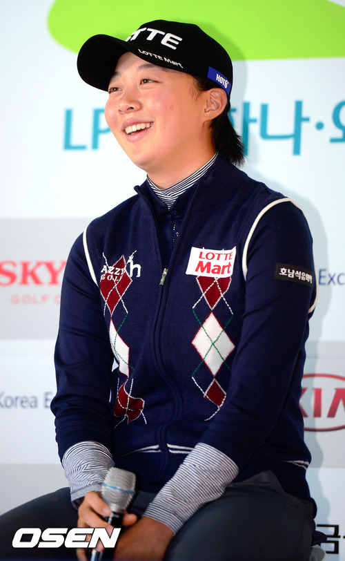 18일 오전 영종도 골프클럽에서 진행된 '김효주 프로 데뷔 기자회견'에서 김효주 프로가 취재진의 질문에 미소를 짓고 있다.