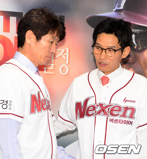 넥센 염경엽 감독과 이강철 수석코치가 이야기를 나누고 있다.