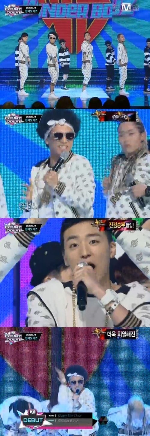 원더보이즈는 18일 오후 6시 방송된 엠넷 '엠카운트다운'에 출연해 데뷔곡 '문을 여시오'를 열창했다.