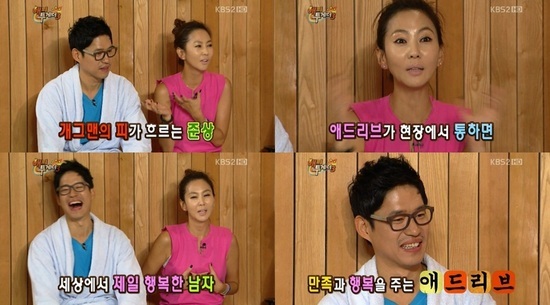 김남주는 18일 오후 방송된 KBS 2TV 예능프로그램 '해피투게더'에서 "유준상은 연기보다 애드리브에 더 행복해 한다"고 밝혔다.