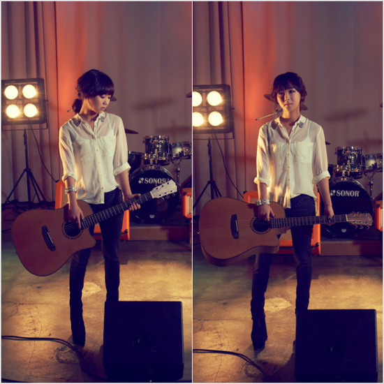 김보경은 사진 속에서 화이트 블라우스에 블랙 스키니진을 입은 채 어쿠스틱 기타를 들고 서있다. 특히 무보정 사진임에도 불구하고 완벽한 11자 라인의 다리와 슬림해진 몸매를 자랑해 눈길을 끈다.