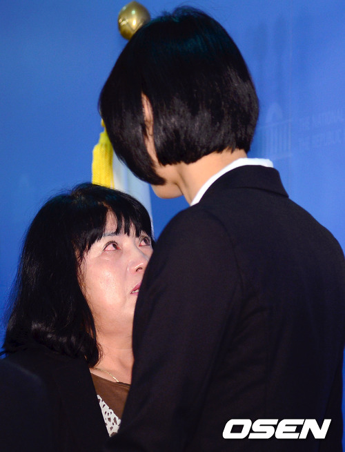 19일 오전 서울 여의도 국회 정론관 기자회견장에서 김연경 어미니가 딸의 기자회견을 듣고 눈물을 보이고 있다.