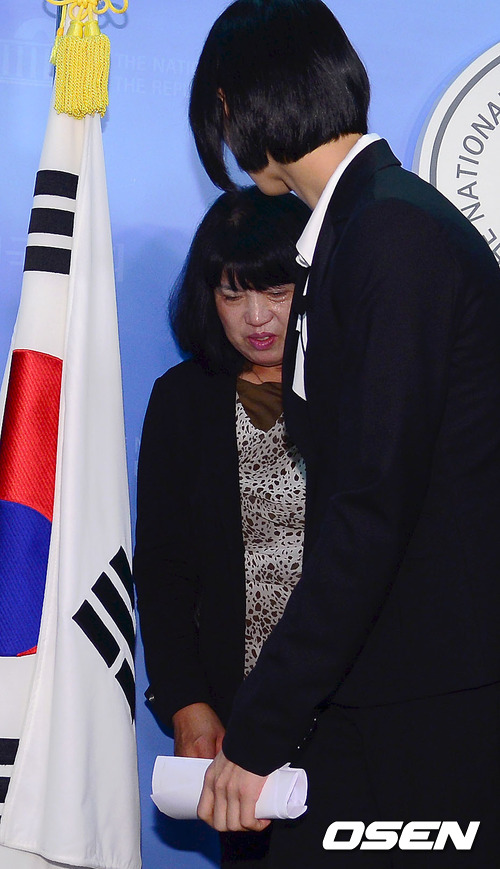 19일 오전 서울 여의도 국회 정론관 기자회견장에서 기자회견을 마친 김연경과 어미니가 기자회견장을 빠져나가고 있다.