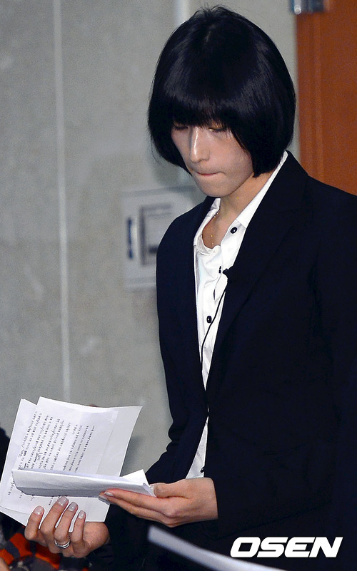 19일 오전 서울 여의도 국회 정론관 기자회견장에서 김연경이 기자회견에 앞서 발표내용을 꼼꼼히 확인하고 있다.