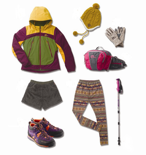 발랄한 느낌을 연출 하고 싶다면 짧은 팬츠에 화려한 패턴이 가미된 레깅스를 입는 것도 좋다. 레깅스라면 패션성과 더불어 보온성까지 지킬 수 있는 똑똑한 아이템이기 때문. 또한 여성들의 경우에는 기존의 등산 모자 보다는 폼폼 장식이 달린 니트 모자로 귀여움을 더 하는 것도 좋다.