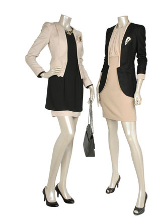 상의에 드레이프 장식과 허리 라인이 강조된 베이지 원피스는 롱 재킷과 매치하면 여성의 바디라인을 아름답게 만들어 성숙하고 섹시한 매력적인 하객룩 연출이 가능하다. 블랙&베이지 룩은 하객패션뿐만 아니라 오피스 룩에도 무난하게 착용할 수 있어 실용성 또한 높다.