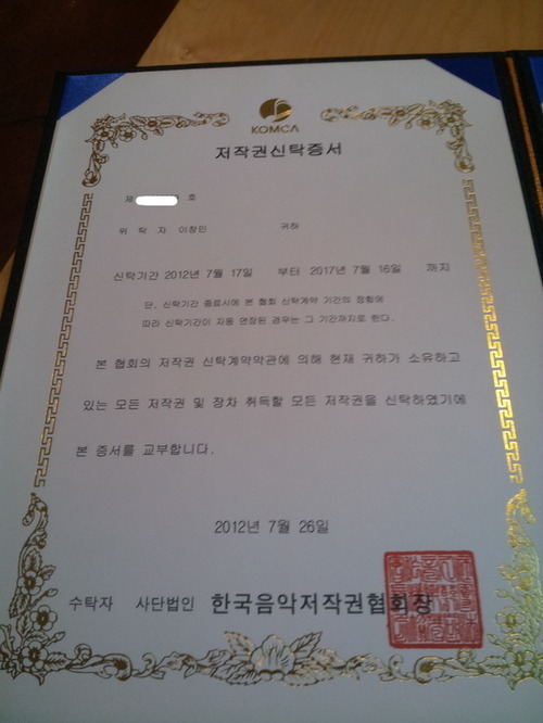 지난 18일 창민은 자신의 트위터에 "작곡가 이창민입니다. 받았지롱" 이라는 글과 함께 협회로부터 받은 '저작권신탁증서'를 찍은 사진을 올렸다.