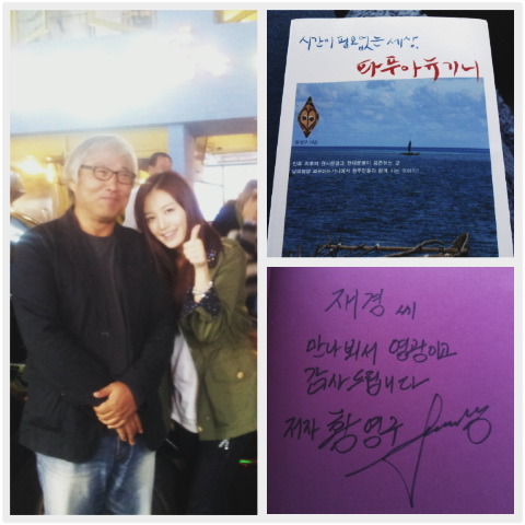사진 속의 재경은 엄지 손가락을 든 채 저자와 함께 즐거운 표정을 짓고 있다.
