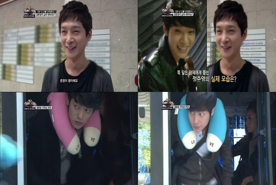 친형의 증언대로 '슈퍼스타K4 백스테이지'에서는 정준영은 엉뚱 발랄한 모습을 다수 볼 수 있다. 그는 첫 생방송 무대에 로이킴과 나란히 커플 목베게를 한 채 등장하기도 하고, 생방송 무대 직전에도 TOP12 멤버들과 장난을 치는 등 전혀 긴장하지 않는 모습을 보여주기도 했다.