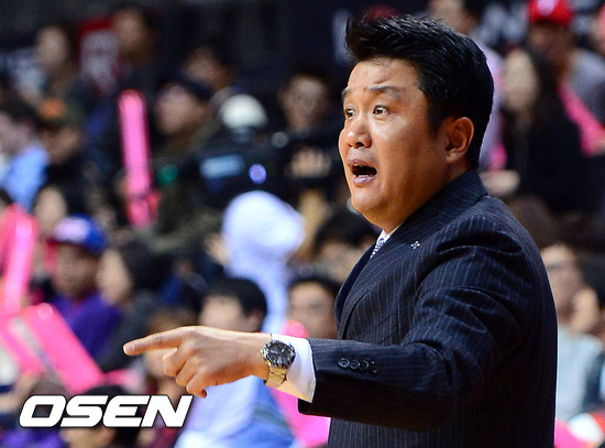 19일 오후 고양 실내체육관에서 열린 'KB 국민카드 2012-2013 프로농구' 고양 오리온스와 인천 전자랜드의 경기 1쿼터 전자랜드 유도훈 감독이 선수들에게 작전지시를 하고 있다.