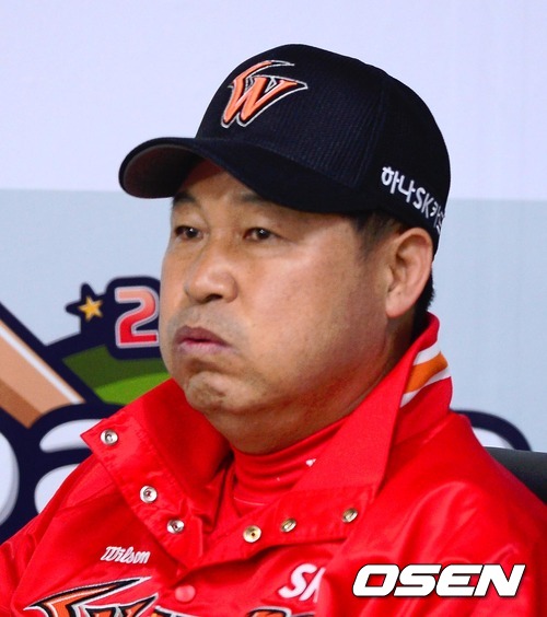 19일 오후 부산 사직구장에서 열린 2012 팔도 프로야구 플레이오프 3차전 롯데 자이언츠와 SK 와이번스의 경기, 7회말 수비때 이만수 감독이 한숨을 쉬고 있다.