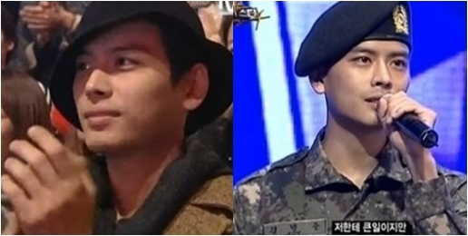 김민준은 지난 19일 방송된 ‘슈퍼스타K4’에서 관객석에 앉아 응원을 하는 모습이 카메라에 잡혔다. 화면 속 그는 군복을 벗고 모자를 쓴 채 패션 감각을 뽐내고 있다.