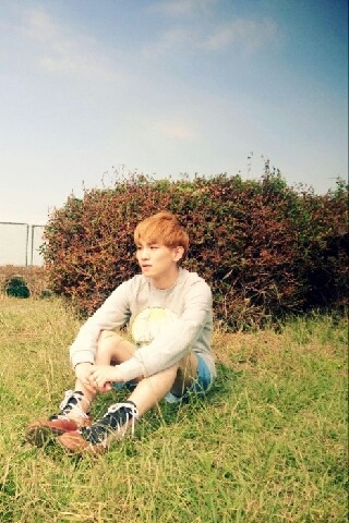 키는 맑은 하늘을 배경으로 푸른 잔디 위에 앉아 아련한 표정으로 무언가를 응시하고 있다. 키의 흰 피부, 밝은 머리색은 주변 배경과 어우러져 편안한 분위기를 풍긴다.