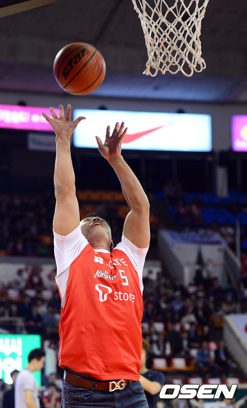 20일 오후 잠실학생체육관에서 열린 'KB 국민카드 2012-2013 프로농구' 서울 SK 나이츠와 울산 모비스의 경기전 런던 올림픽 유도 금메달 리스트 송대남이 시투를 하고 있다.
