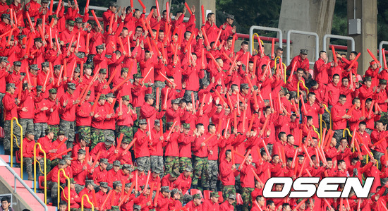 20일 오후 포항 스틸야드에서 열린 '2012 FA컵 결승전' 포항 스틸러스와 경남 FC의 경기, 전반 해병대 장병들의 응원이 눈길을 끈다.